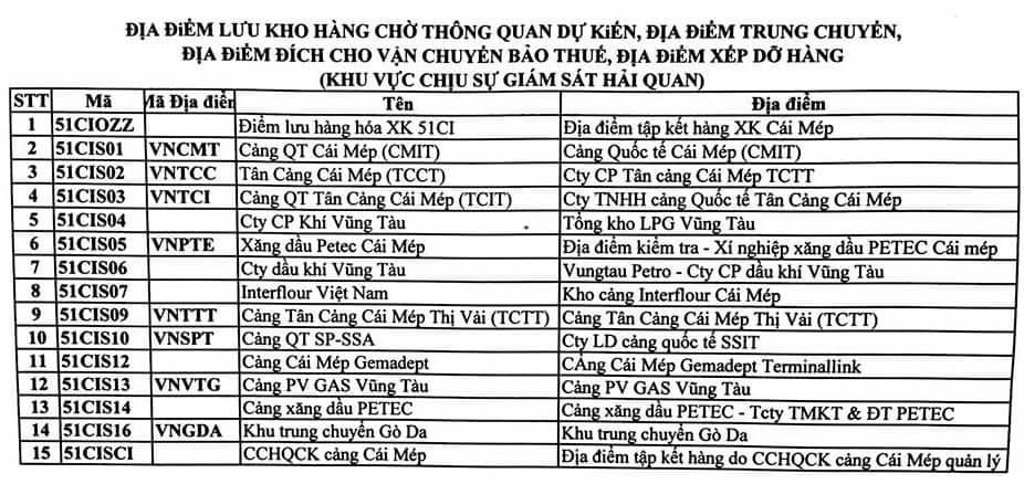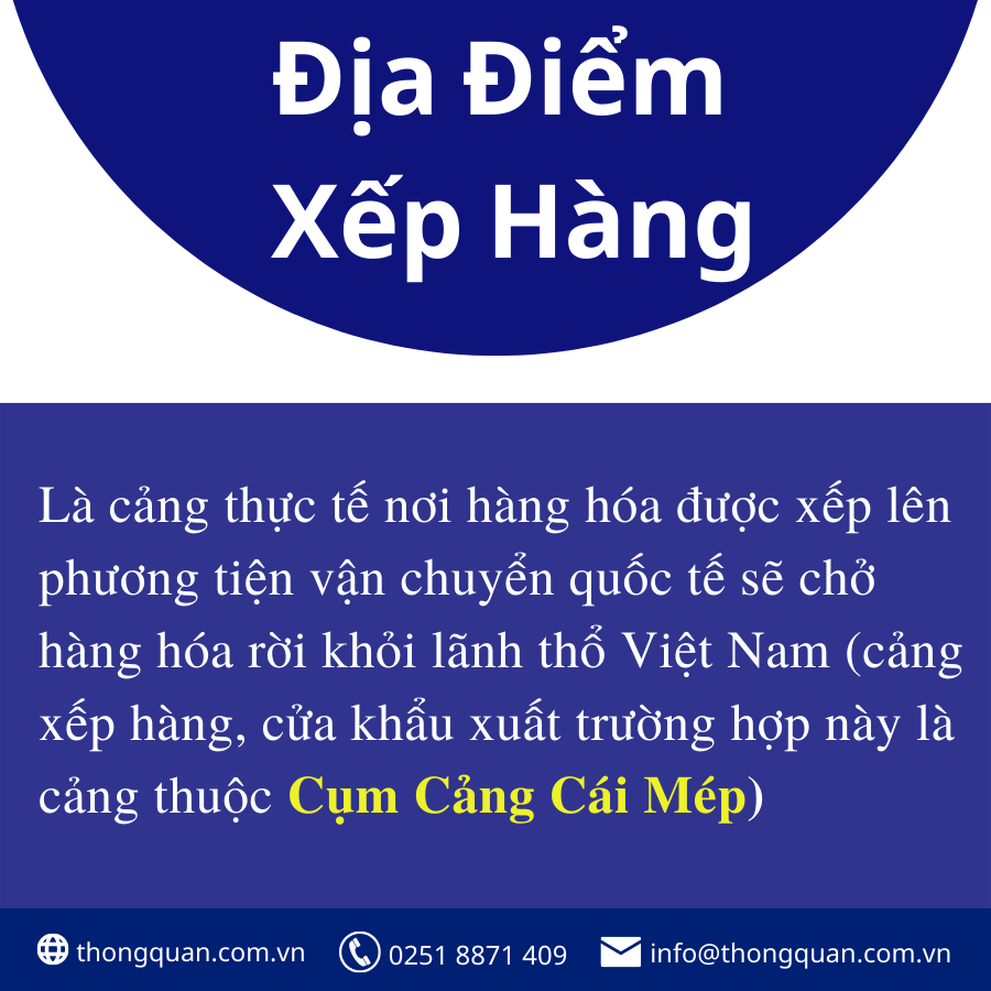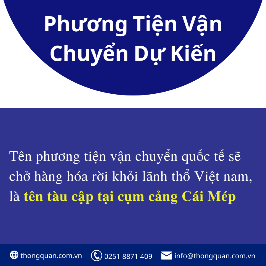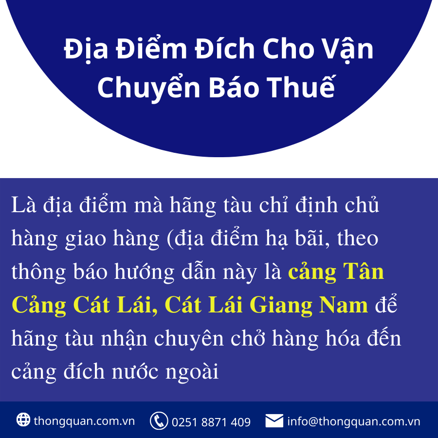 Hướng dẫn và đề nghị quý khách hàng thực hiện khai báo thủ tục hải quan cho các tiêu chí về địa điểm báo thuế, phương tiện vận chuyển và cửa khẩu xuất tàu cho hàng hóa xuất khẩu tập kết vài cảng Tân Cảng Cát Lái, Cát Lái Giang Nam, sau đó tiếp tục vận chuyển đi cảng Cụm Cảng Cái Mép đề xuất tàu như sau: