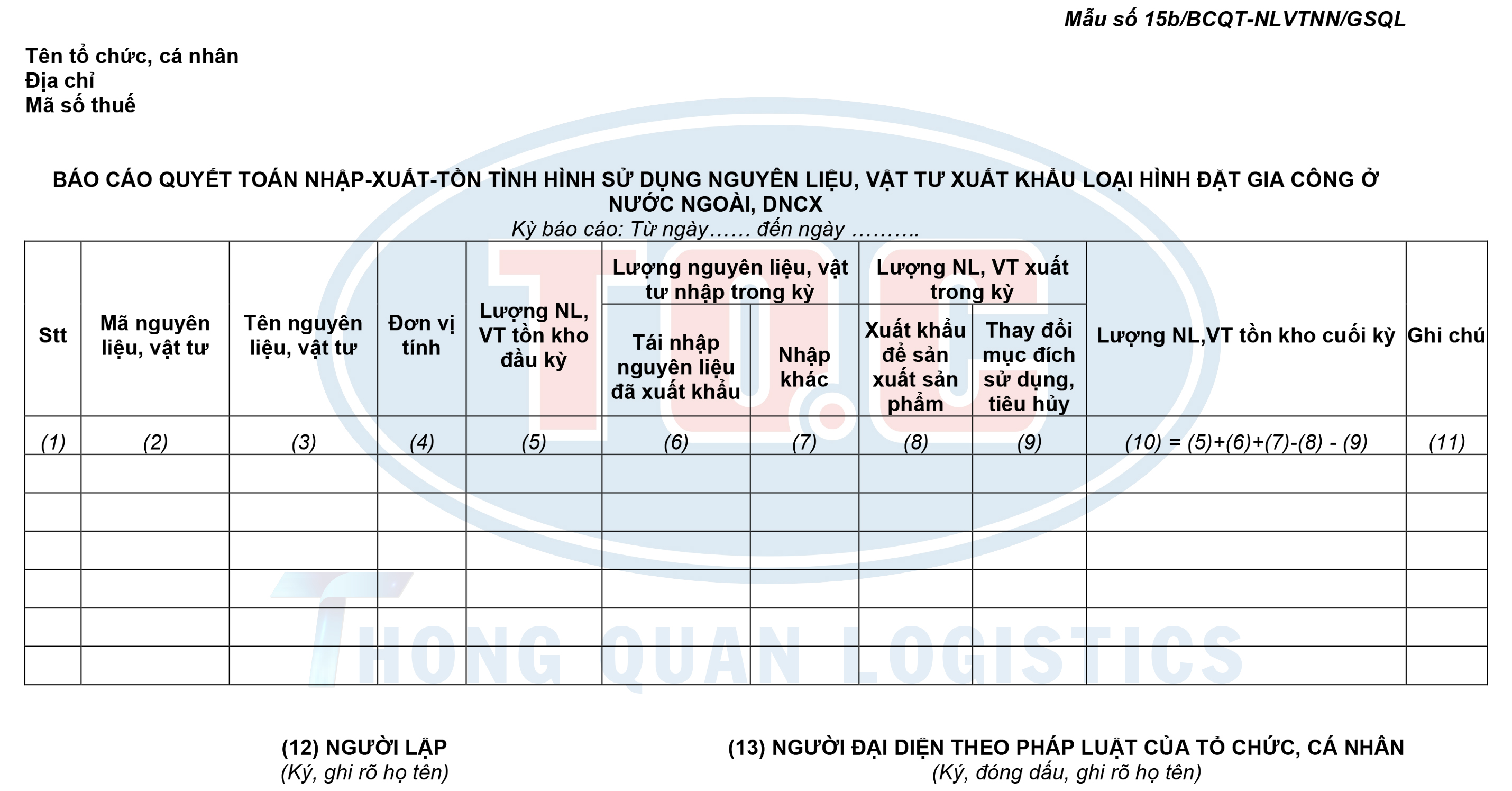 2. Số liệu thể hiện trên báo cáo quyết toán là số liệu theo dõi, quản lý tại kho của tổ chức, cá nhân đặt gia công.